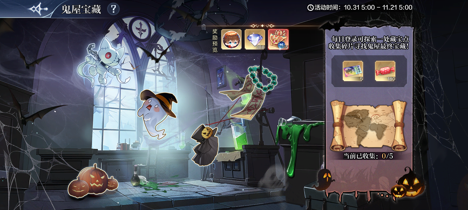 1、每日進(jìn)入鬼屋可獲得1次尋找寶藏的機會