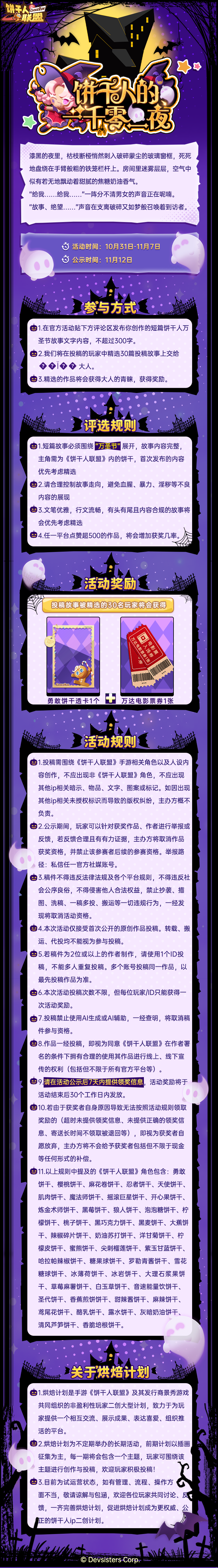 在官方活動貼評論區(qū)發(fā)布你創(chuàng)作的《餅干人聯盟》萬圣節(jié)短篇故事(≤300字),即視為成功投稿。