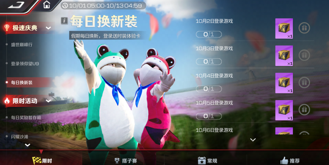 10月01日05:00-10月13日04:59,限時時裝體驗活動上線!只要你登錄游戲,各種漂亮衣服免費穿!