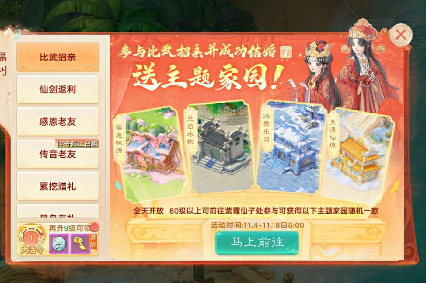 比武招親福利升級(jí)!在【仙劍奇?zhèn)b】服務(wù)器成功通過比武招親結(jié)婚的少俠,雙方都將獲得隨機(jī)主題房子一套!