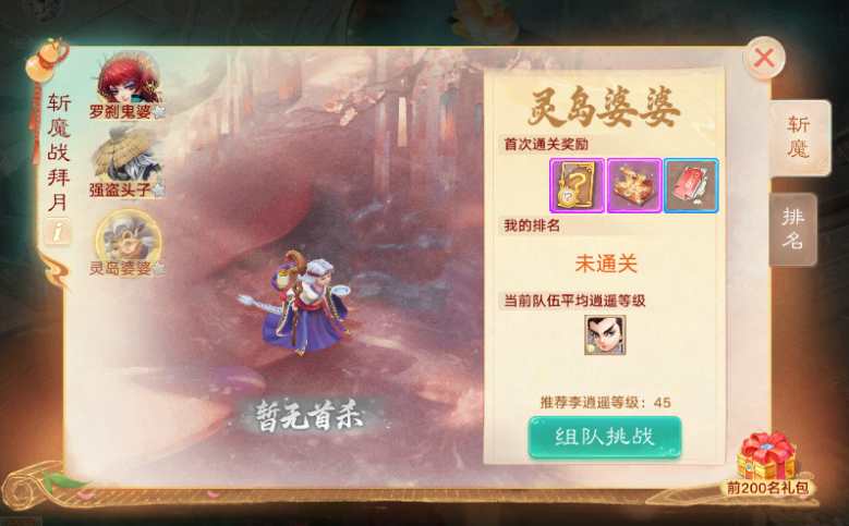 “斬魔戰(zhàn)拜月”聯(lián)動(dòng)玩法,和好友組隊(duì)迎戰(zhàn)BOSS,成功挑戰(zhàn)后,還將根據(jù)通關(guān)時(shí)間進(jìn)行排名,前200名可獲得額外排行榜獎(jiǎng)勵(lì)!