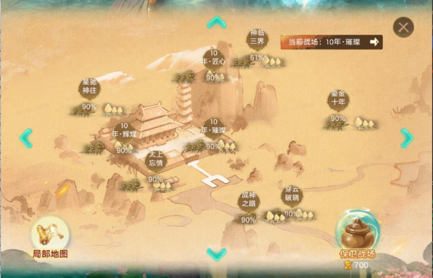 作戰(zhàn)大地圖將整個(gè)大話世界(道具服+時(shí)間服)劃分為近80個(gè)區(qū)域,共同抵御拜月教主的攻勢(shì)。