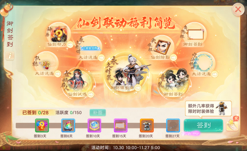10月30日至11月26日,《大話西游》手游X《仙劍奇?zhèn)b傳》聯(lián)動(dòng)玩法“御劍鎮(zhèn)長(zhǎng)安”全服開啟,等級(jí)≥80級(jí)的少俠均可參與。