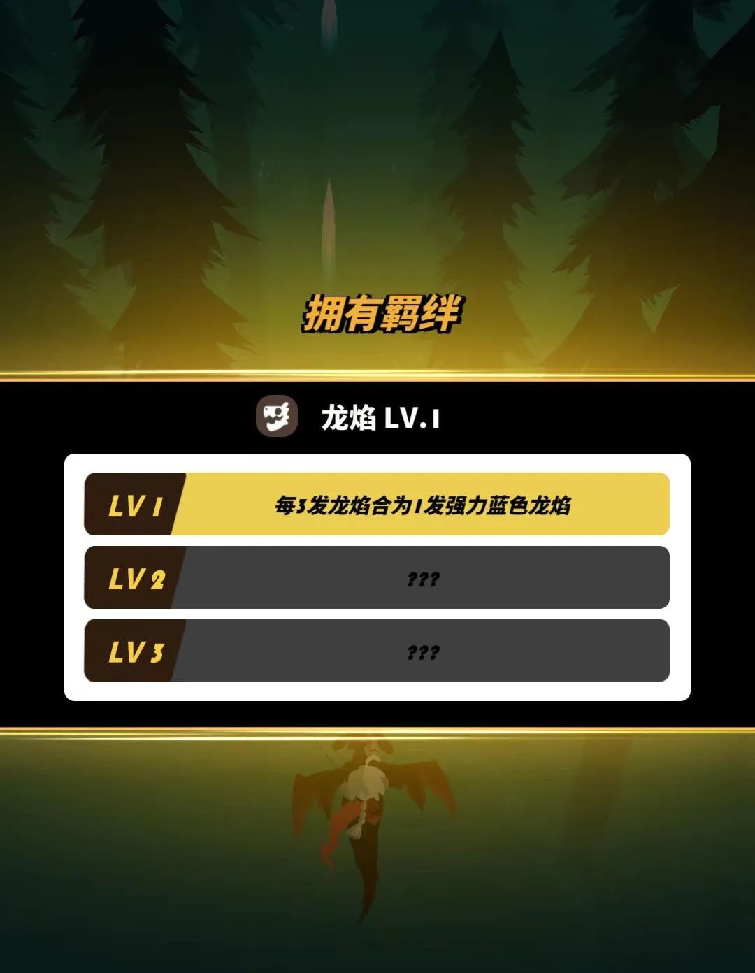 選擇三個(gè)相同類型祝福時(shí)可以激活羈絆,比如選擇【龍焰擊殺爆炸】+【幸運(yùn)數(shù)字6】+【龍焰增幅】這3個(gè)相同類型的祝福就可以激活羈絆【每3發(fā)龍焰合為1發(fā)強(qiáng)力藍(lán)色龍焰】,能瞬間對(duì)目標(biāo)造成大量傷害!