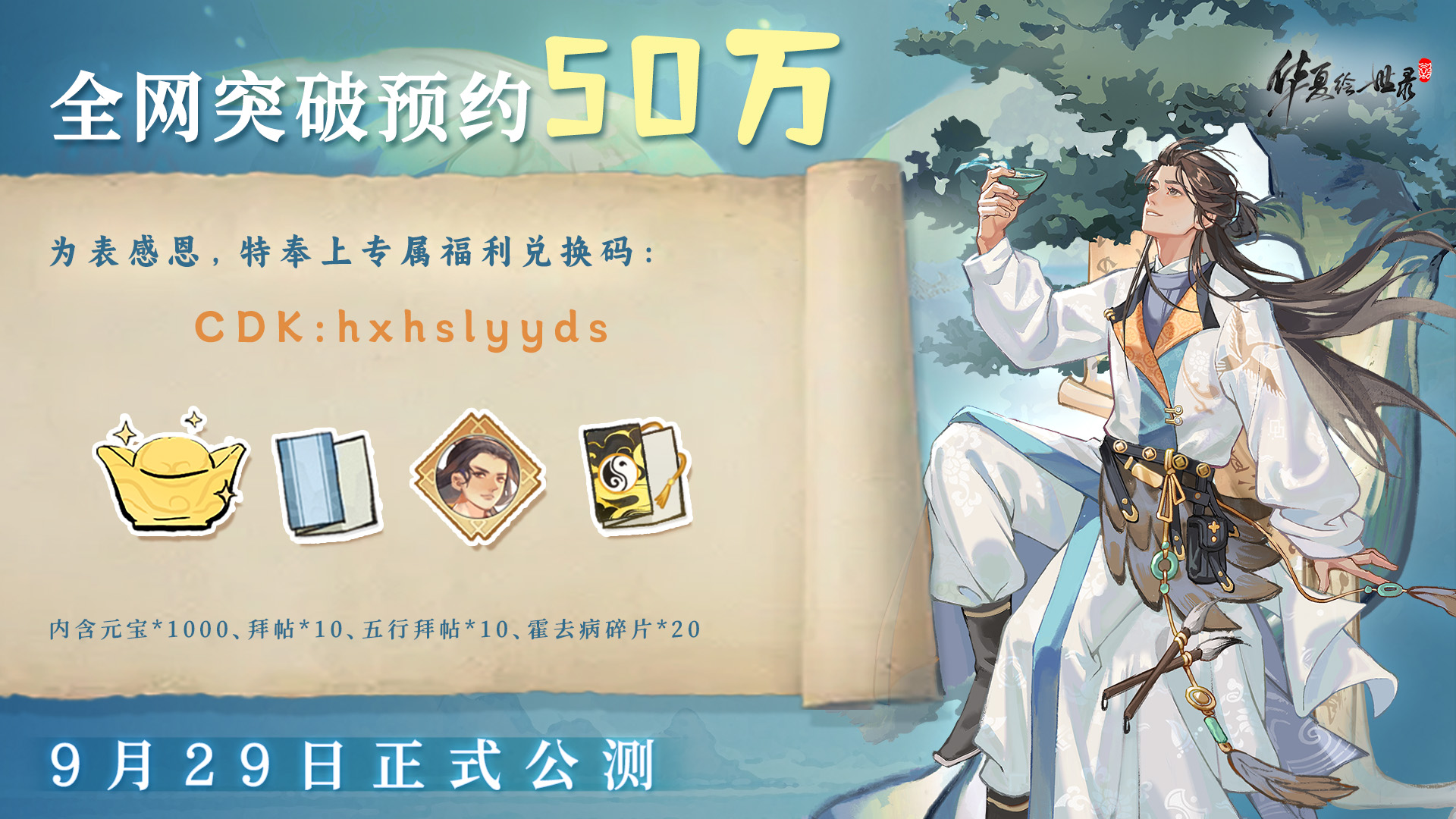 普天同慶!承蒙各位大人厚愛,游戲預(yù)約人數(shù)現(xiàn)已突破30萬!為表感恩,特奉上專屬福利兌換碼:hxhslyyds