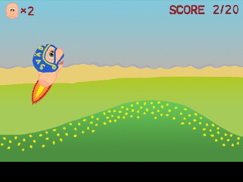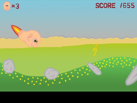 You play as the fabled Jetface named Joybum and must do your best to spread love, peace and a not quite so pleasant ell throughout the world. Be careful though, some things in the world are not ready for the joy that Joybum brings and will do everything in their power to stop her. These mean things seems to have a huge collection of rocks at their disposal and its up to you to help Jetface Joybum avoid these rocks for as long as possible.Controls:Touch the screen to go up.Release the screen to go down.Key features:*Simple controls.*Minimal reading.*Weird humor.