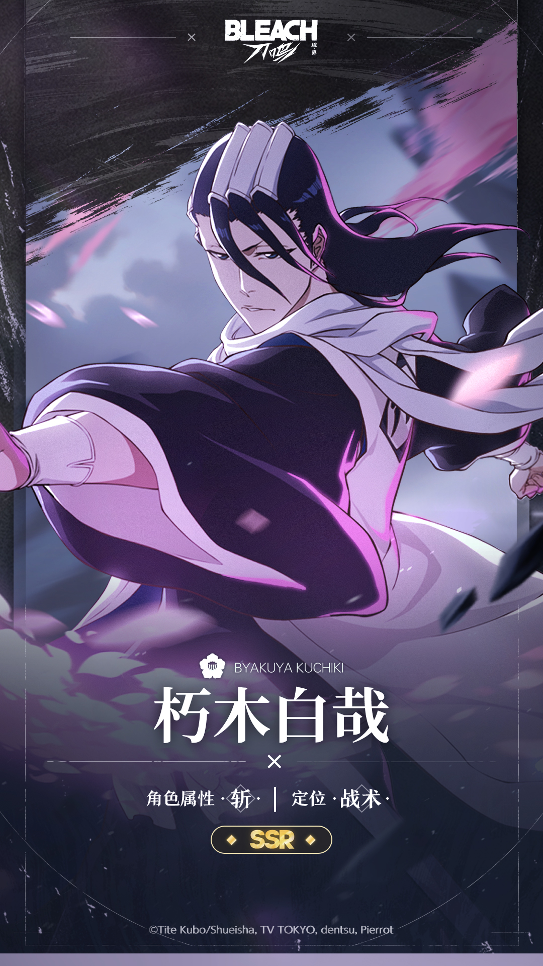 游戲中的白哉是中距離單體輸出角色,戰(zhàn)技釋放期間可以同時切換隊友攻擊。戰(zhàn)場技可讓白哉在后臺持續(xù)輔助輸出,并降低敵人斬系抗性。朽木白哉擁有強大的脫手攻擊手段,是斬系隊輸出的強力輔助。