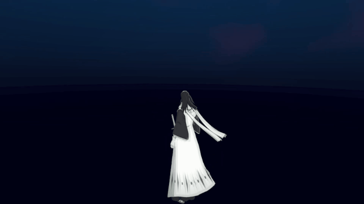 白哉手持千本櫻持續(xù)對面前的敵人進行斬擊,造成多段傷害。