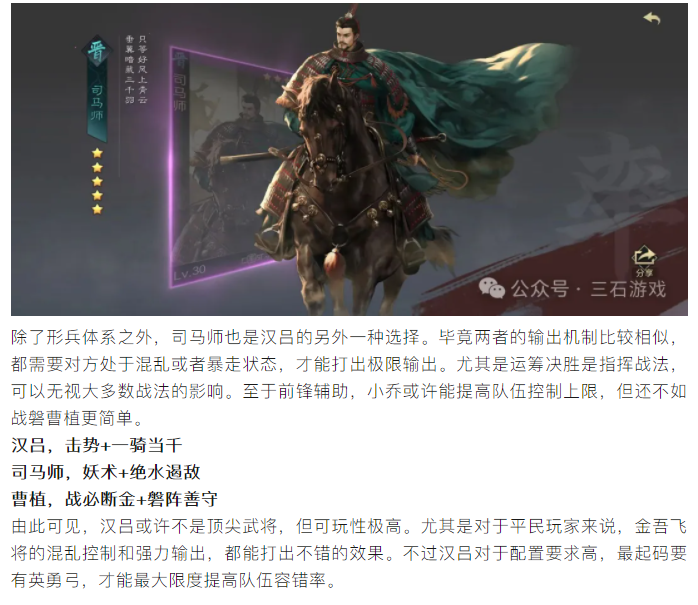 - 【攻略分享】曹純合縱蜀騎,極致增傷前期無敵