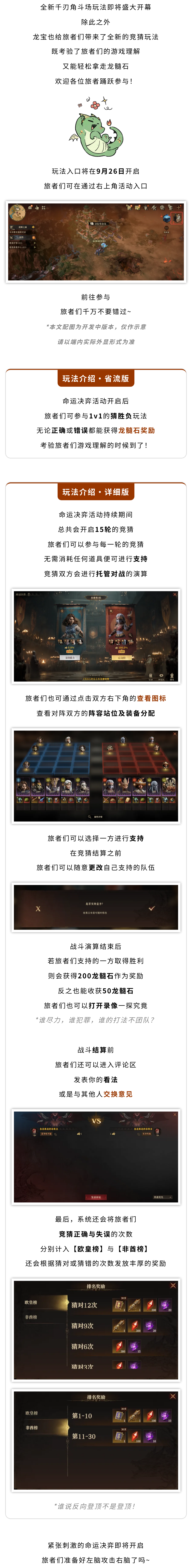 手機(jī)游戲> 龍息神寂> 游戲新聞> 命運(yùn)決弈|全新競猜玩法前瞻