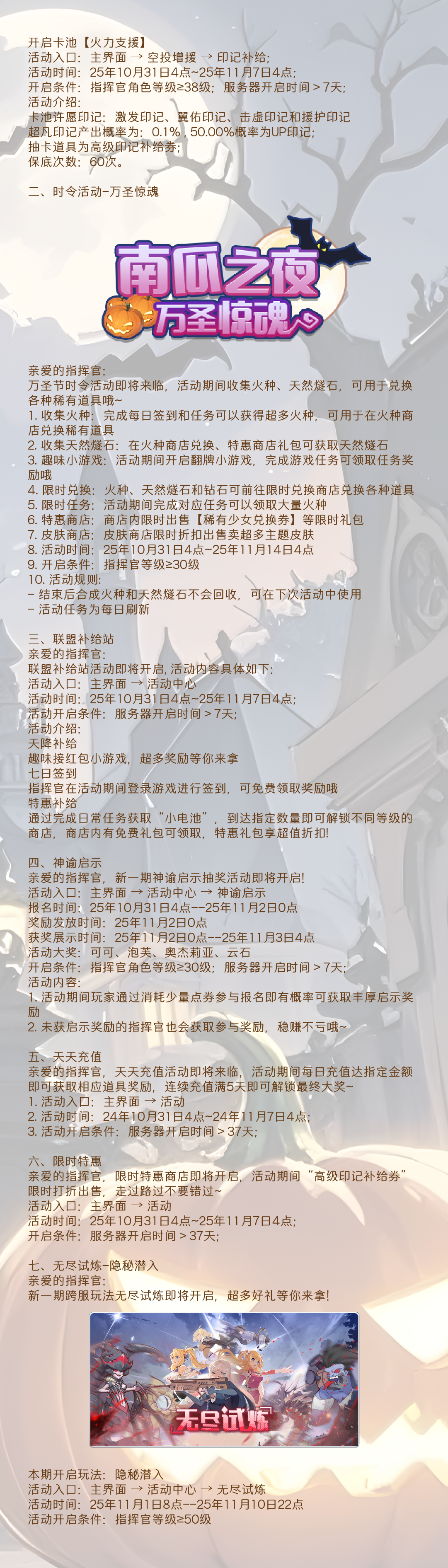10月31日半獸卡池來襲,可可,泡芙,奧杰莉亞,云石即將返場,各位指揮官走過路過不要錯過哦~