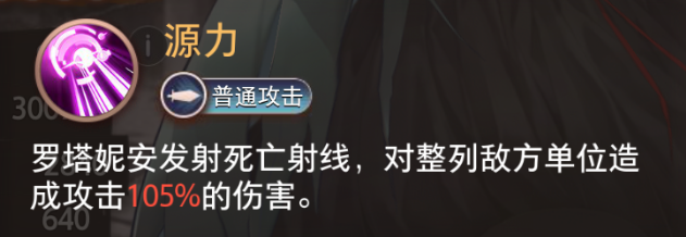 羅塔妮安發(fā)射死亡射線,對整列敵方單位造成攻擊105%的傷害。