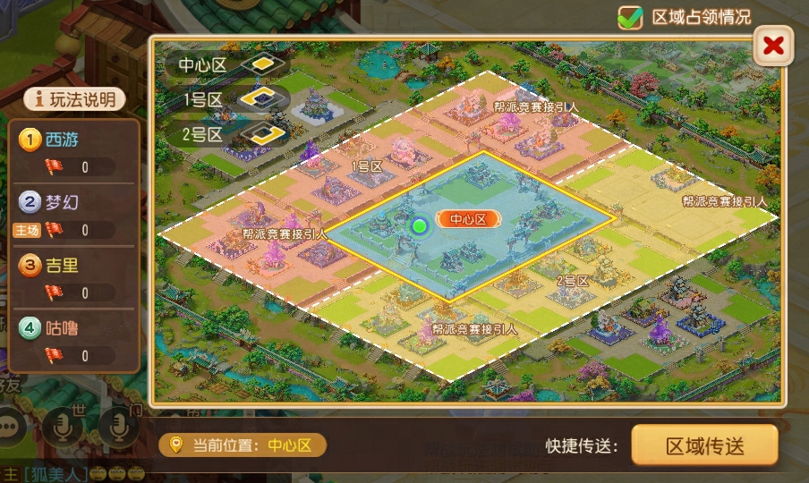 1.榜首幫派駐地將設為戰(zhàn)場,場景劃分為三區(qū),各幫派成員展開對戰(zhàn)。