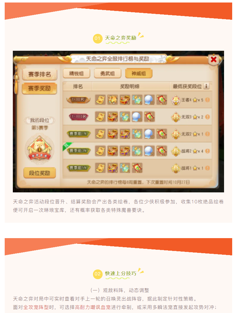 天命之弈第5賽季馬上就要結束了,各位少俠都達到哪個段位了呀?靈兒收到了許多少俠求攻略的留言,今天就為大家?guī)碣惣灸_分攻略,助力少俠打進賽季前3%!