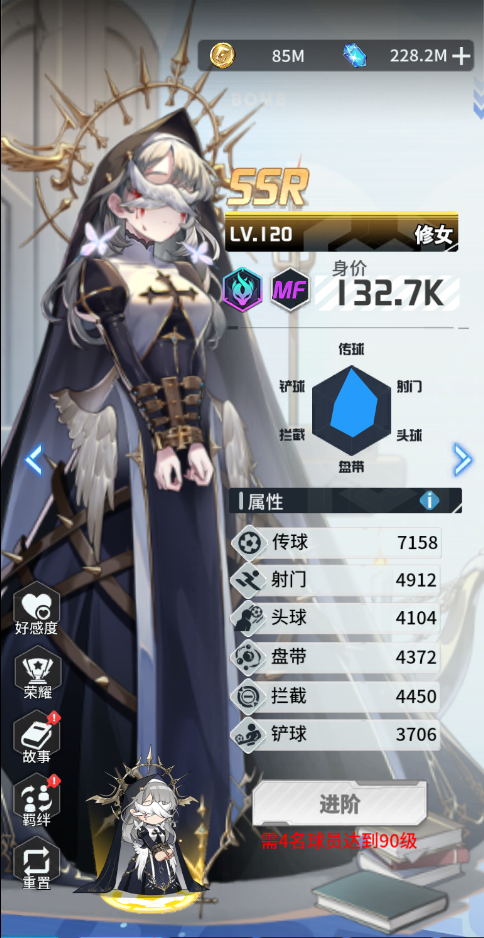 與羈絆英雄嫦娥同時上場時,可提升自身的傳球、射門、頭球等技能屬性上限。
