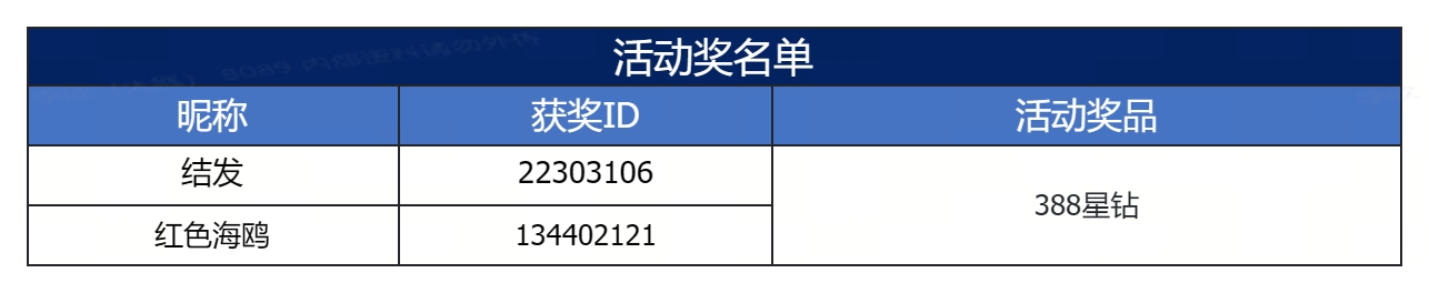 ?獲得【388星鉆】玩家,獎(jiǎng)勵(lì)將在7個(gè)工作日內(nèi)會(huì)發(fā)放至團(tuán)長(zhǎng)的游戲內(nèi)郵件中~注意查收哦!
