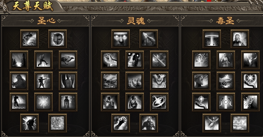 道士天賦分為圣心 靈魂 毒圣三個分支,每種天賦可任意加點,單頁最高天賦只可選擇一種