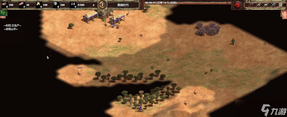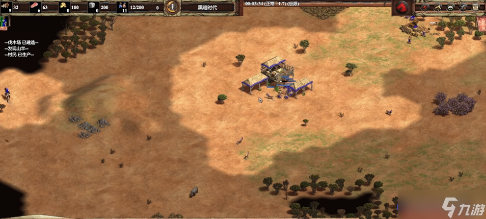 開(kāi)局階段是決定整局游戲節(jié)奏的關(guān)鍵,咱們一上來(lái)就要瘋狂造村民,千萬(wàn)別停。初始的三個(gè)村民先一起蓋房子,蓋完立馬分一個(gè)去蓋第二座房子,剩下兩個(gè)去殺羊。記得派偵察兵把附近的羊趕回家,這樣能省下不少跑路時(shí)間。等村民造出來(lái)后直接吃羊,保持6個(gè)村民在羊身上干活,剩下的去伐木,建議伐木場(chǎng)左右各放兩個(gè)人。羊不夠吃的時(shí)候記得讓偵察兵把鹿也趕回來(lái),這樣食物就不會(huì)斷檔了。