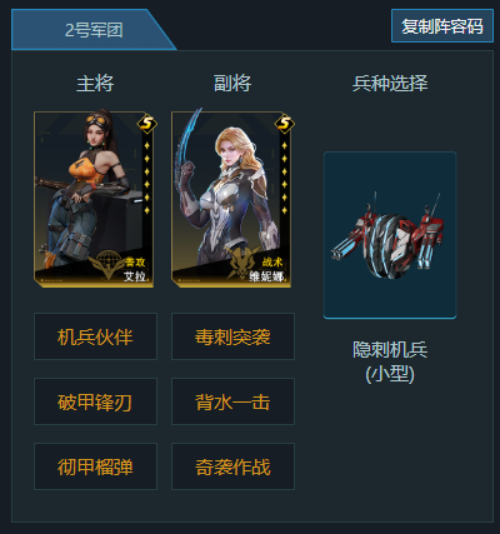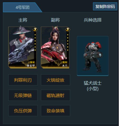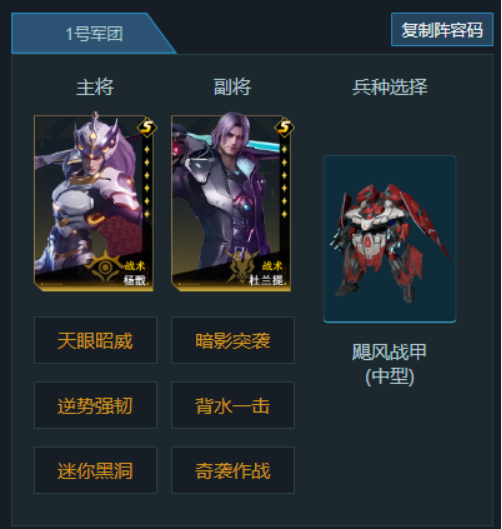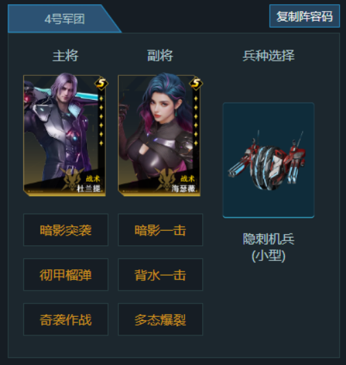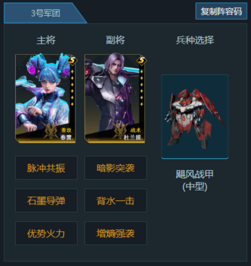 另外,群星助手小程序支持使用陣容碼了,文中所有配隊均提供陣容碼,指揮官可以直接復制陣容碼在游戲內按照招募界面-陣容推薦-導入陣容碼-應用陣容的操作路徑,輕松完成配隊。