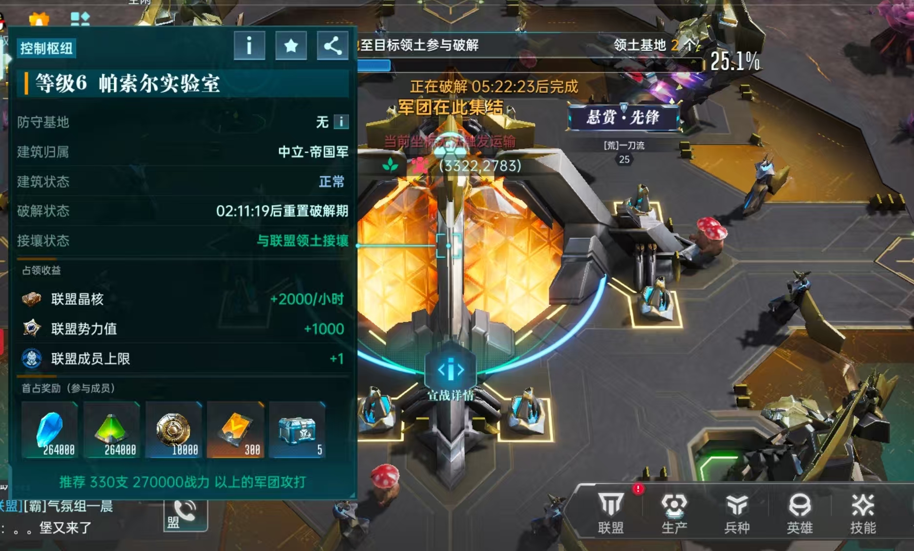 隨著實驗室周邊堡壘被逐一清除,天庭大軍完成合圍,并迅速飛堡駐守。深夜在聯(lián)盟頻道鼓勵:“兄弟們守到夜堡,勝利就是我們的!”