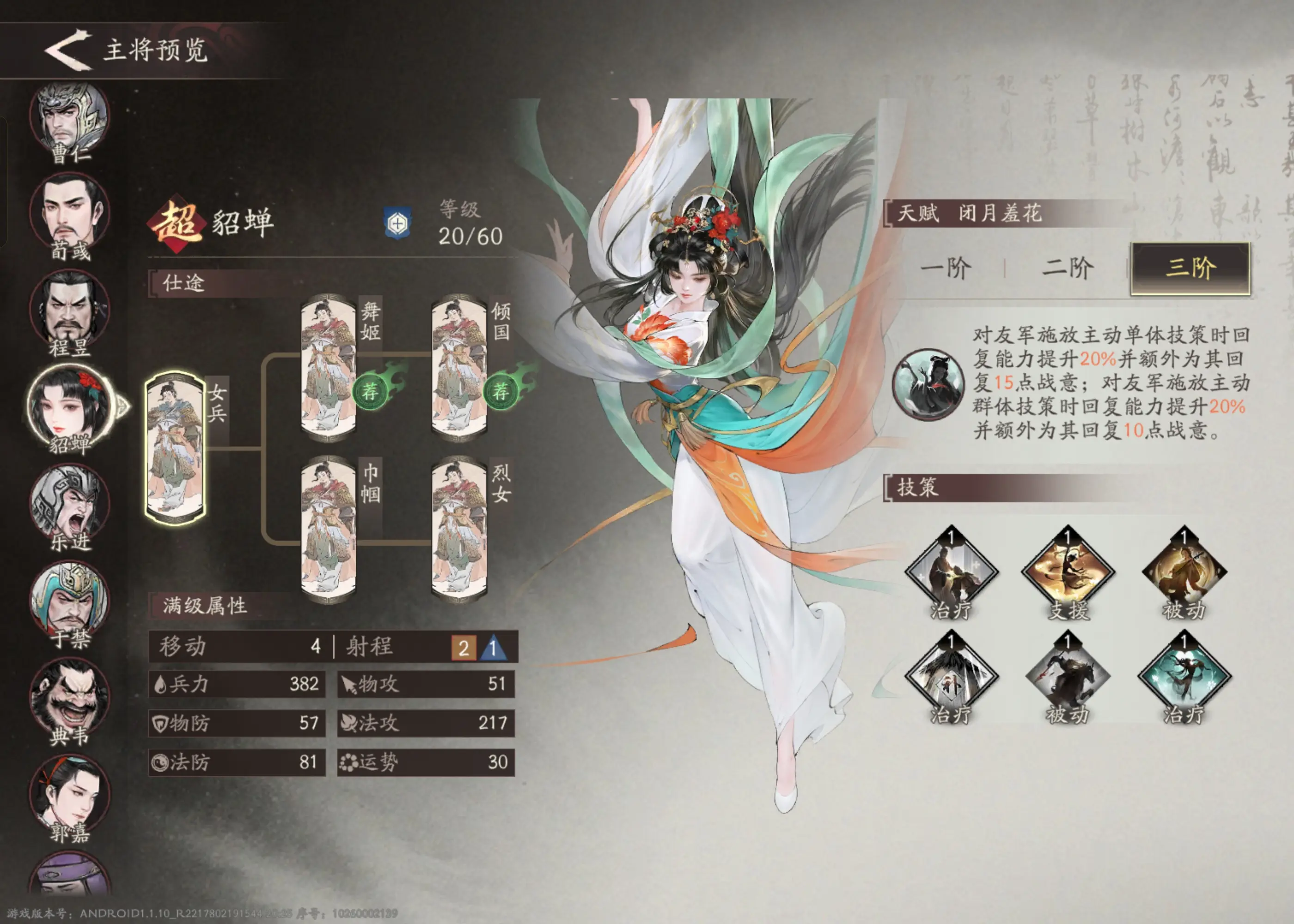 在戰(zhàn)棋游戲中,輔助角色的價值通常體現(xiàn)在治療、增益或削弱上。然而,貂蟬的存在,為“輔助”這一概念提供了全新的維度。她并非一個傳統(tǒng)的治療者,而是一位能夠從根本上操縱戰(zhàn)場節(jié)奏,掌控行動與戰(zhàn)意這兩大核心資源的戰(zhàn)略級將領(lǐng)。