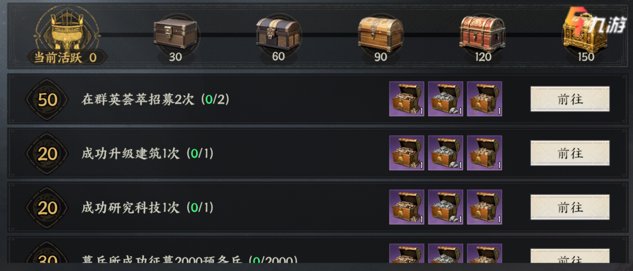 日常任務(wù):是我們獲取資源的保底任務(wù),完成就能獲取大量的建筑材料,完成難度都很低,活躍度達到指定值還能獲取元寶,是平民玩家獲取元寶的主要方式之一。