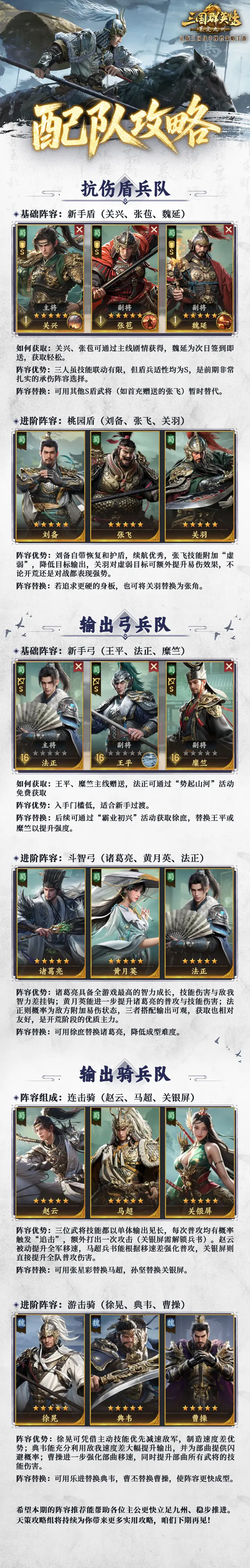 手機游戲> 三國群英傳策定九州> 游戲新聞> 【攻略分享】看到就是賺到,新手絕對不能錯過的配隊攻略來啦!