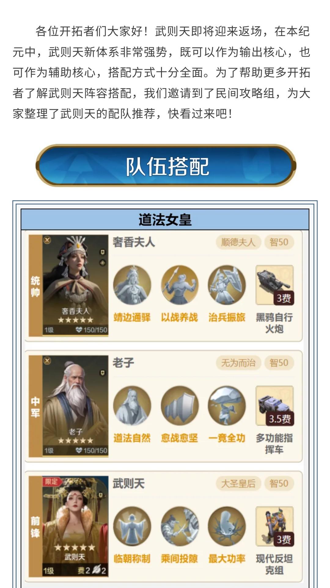 手機(jī)游戲> 世界啟元手游> 游戲新聞> 攻略分享丨武則天返場(chǎng)配隊(duì)攻略推薦