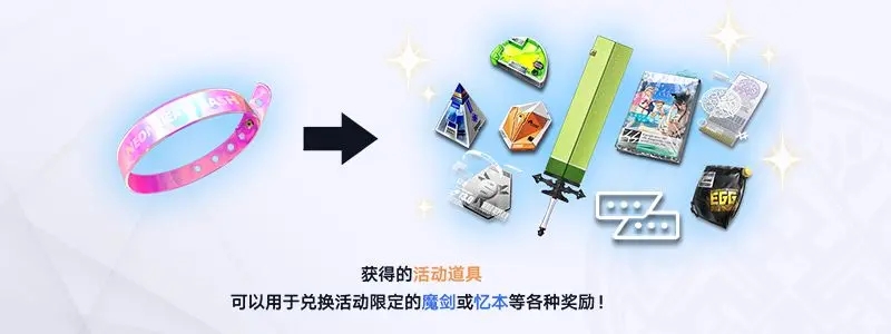 - 使用活動(dòng)道具「閃耀手環(huán)」兌換活動(dòng)限定魔劍與憶本等豐富獎(jiǎng)勵(lì)喵!