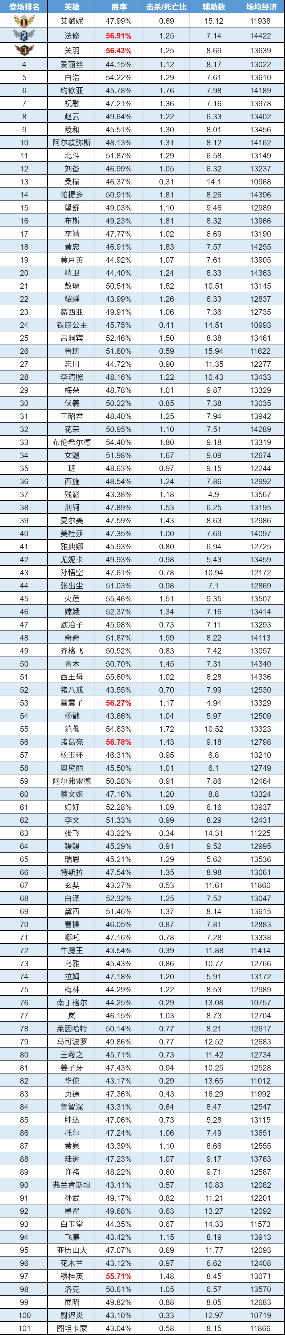 【高段位】法修人氣躍升至第二,關(guān)羽受重做影響,熱度飛升至TOP3,勝率同步挺進前三;法修蟬聯(lián)兩周場均經(jīng)濟之王。