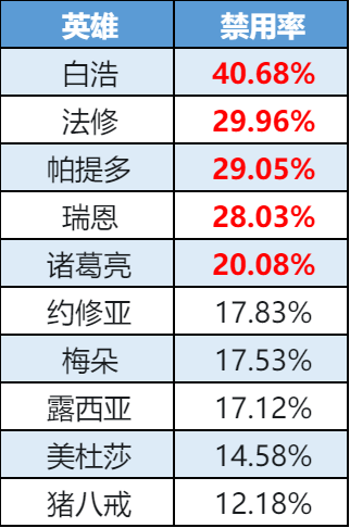 禁用率榜-諸葛亮回歸前五,豬八戒上榜