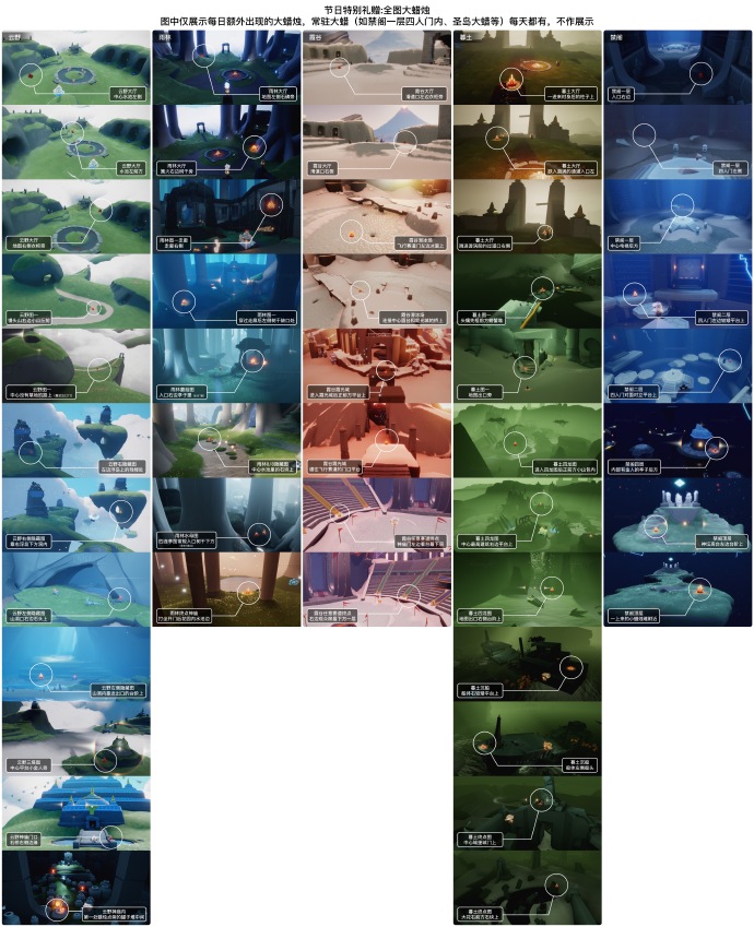 《光遇》游戲中每天的每日任務(wù)及大蠟燭的位置都不相同,玩家完成每日任務(wù)及收集大蠟燭都可以得到豐厚的兌換獎勵,獎勵可以用于兌換各種動作及道具,不過很多小伙伴不知道每日任務(wù)怎么做,又懶得自己去找大蠟燭的位置,我們匯總了每日任務(wù)的完成攻略以及蠟燭位置,一起來看看吧!
