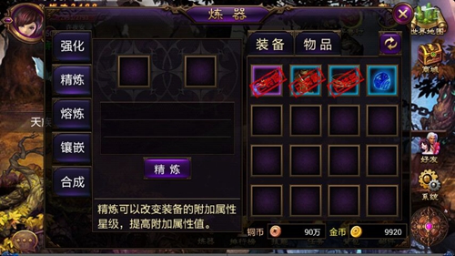 裝備系統(tǒng):裝備是由副本掉落。裝備強化、裝備精煉、裝備熔煉以及寶石系統(tǒng)四大組成部分,是戰(zhàn)力提升的利器。但是所需的材料均可在副本里獲取,所以說只要努力,也能成為強力的一員,站在王者之巔。