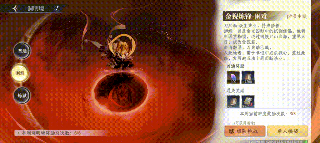 洞明境為周常挑戰(zhàn)玩法,仙友可自行選擇單人或組隊(duì)進(jìn)入。副本設(shè)普通、困難、煉獄三種難度,通關(guān)即可領(lǐng)取高階心法及養(yǎng)成資源。