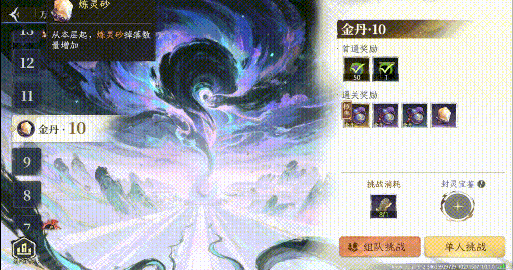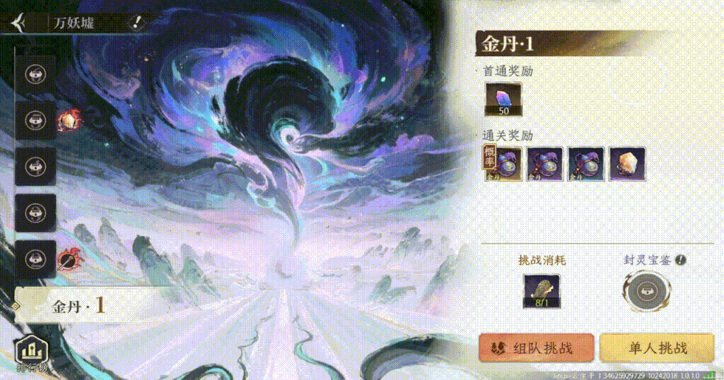萬(wàn)妖墟是面向金丹前期及以上境界仙友的高難度挑戰(zhàn),仙友需消耗「萬(wàn)妖令」入場(chǎng)。層層挑戰(zhàn),難度遞增,通關(guān)可解鎖更高層數(shù),不僅能夠贏取高品質(zhì)法寶與養(yǎng)成資源,更能沖擊全服排行榜。