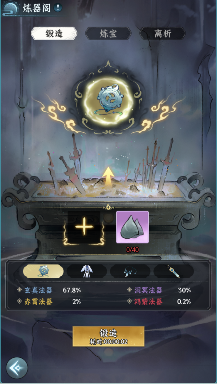 法器和法寶的打造材料主要通過游歷挑戰(zhàn)和斗仙臺斗法獲得,而煉器閣會有一定概率自然產出。