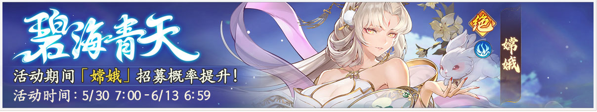【活動(dòng)說明】活動(dòng)期間內(nèi),【絕】品秘玄角色「嫦娥(仙)」的出率將在對(duì)應(yīng)卡池中大幅提