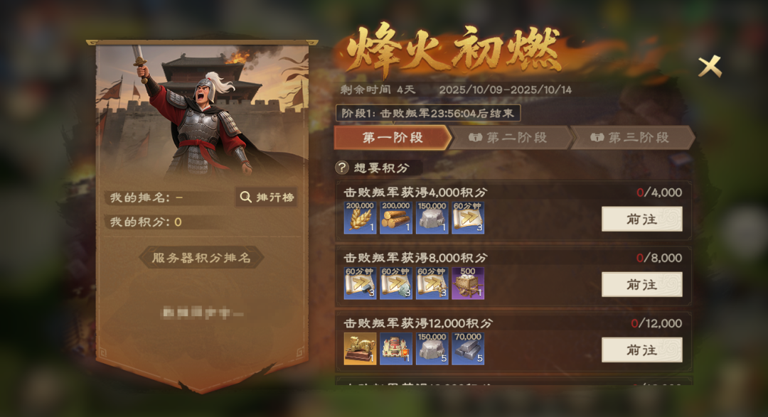 活動(dòng)分為“擊敗叛軍”、“部隊(duì)訓(xùn)練”、“捐獻(xiàn)資源”3個(gè)階段,完成任務(wù)不僅可獲得個(gè)人獎(jiǎng)勵(lì),更能為國家累計(jì)積分。
