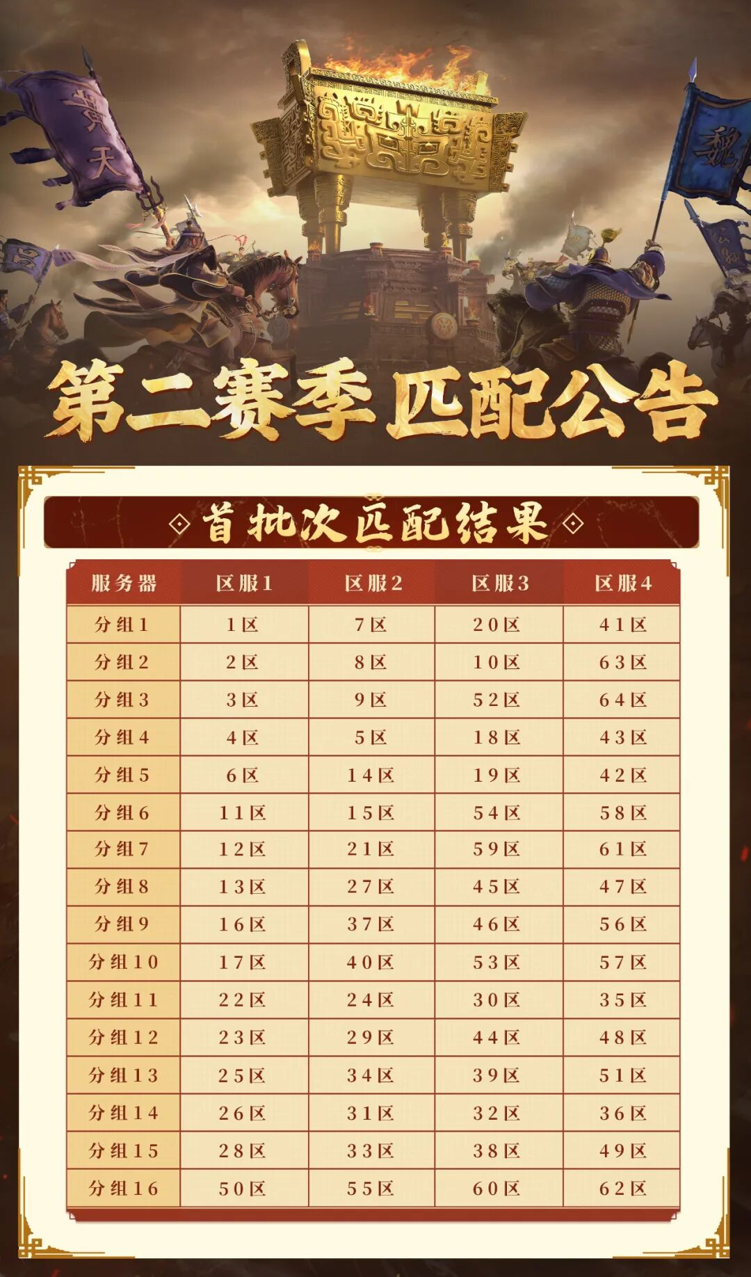 2)同一區(qū)段的服務(wù)器,將在匹配時(shí)根據(jù)服務(wù)器綜合實(shí)力,每四個(gè)服務(wù)器分為一組,共同征戰(zhàn)新賽季。