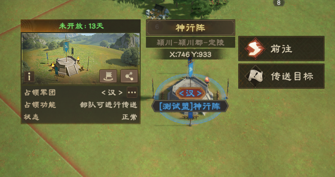 ● 神行陣位置:二級(jí)資源州的州府附近,軍團(tuán)任意同盟在神行陣所在領(lǐng)土上建造了官署或府城,即視為占領(lǐng);