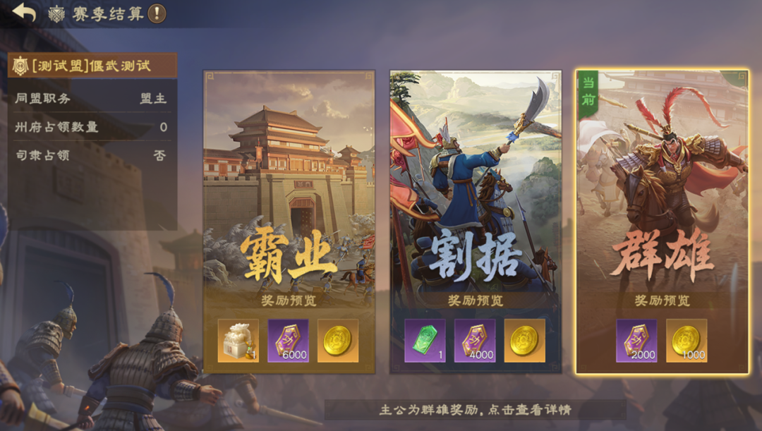 ● 賽季結(jié)算時(shí)同盟每占領(lǐng)一個(gè)州府,則同盟所有成員在進(jìn)入下賽季時(shí)額外獲得1玉圭;
