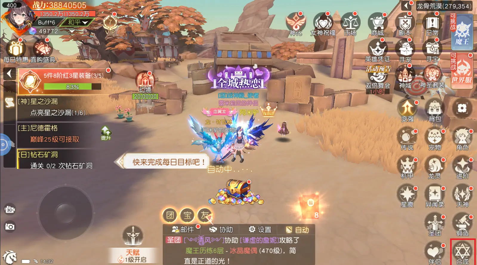 特殊:將游戲中其他養(yǎng)成系統(tǒng)所需的材料進行合成的渠道。游戲的多種類型道具的合成碎片或者合成更高級道具,包括寵物、天神等。