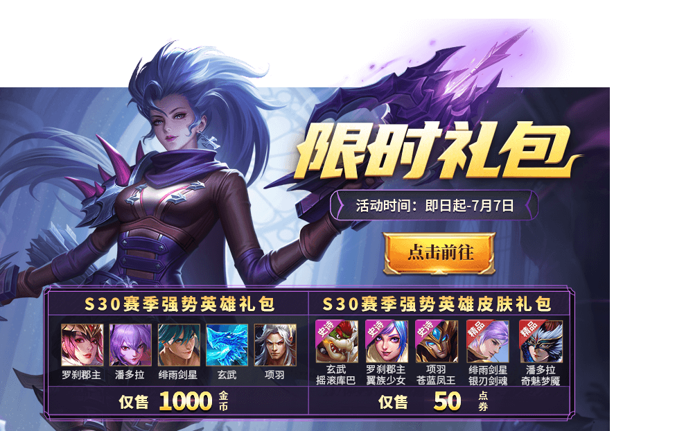商城上架“S30賽季強(qiáng)勢英雄禮包”和“S30賽季強(qiáng)勢英雄皮膚禮包”!