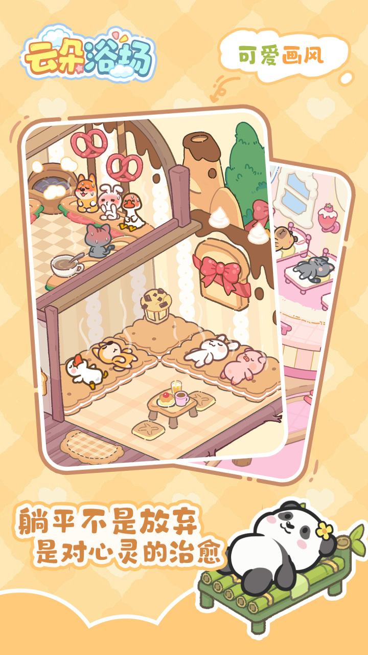 《云朵浴場(chǎng)》是一款模擬經(jīng)營(yíng)類游戲,玩家通過升級(jí)設(shè)施提升浴場(chǎng)等級(jí)獲得金錢,解鎖更高級(jí)的裝扮。在游戲中玩家將扮演水獺紅豆,經(jīng)營(yíng)家鄉(xiāng)的一座老座浴場(chǎng)。對(duì)紅豆來說,這座浴場(chǎng)不僅是療愈自我的港灣,也是能給所有小動(dòng)物帶來慰藉的地方,讓到這里的每一個(gè)小動(dòng)物,都能卸下疲憊,獲得輕松與治愈。