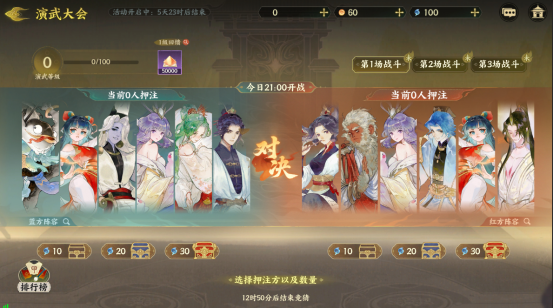 活動期間玩家每日可參與三場同步開啟的紅藍陣營對決押注。押注時間為每日8:00~20:55,21:00公布結(jié)果,每次押注可積累積分提升預(yù)言等級,解鎖階段獎勵。