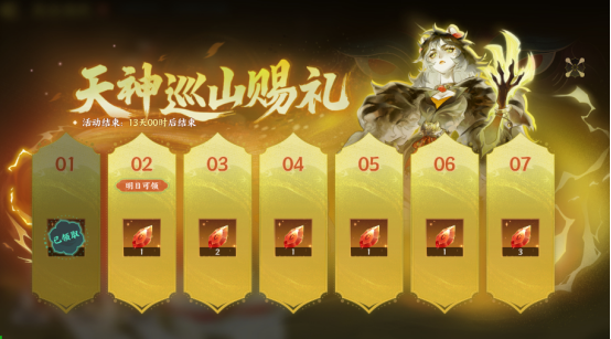 天神巡山賜禮 :七日簽到免費領(lǐng)取幻靈進階材料、限定稱號等獎勵;