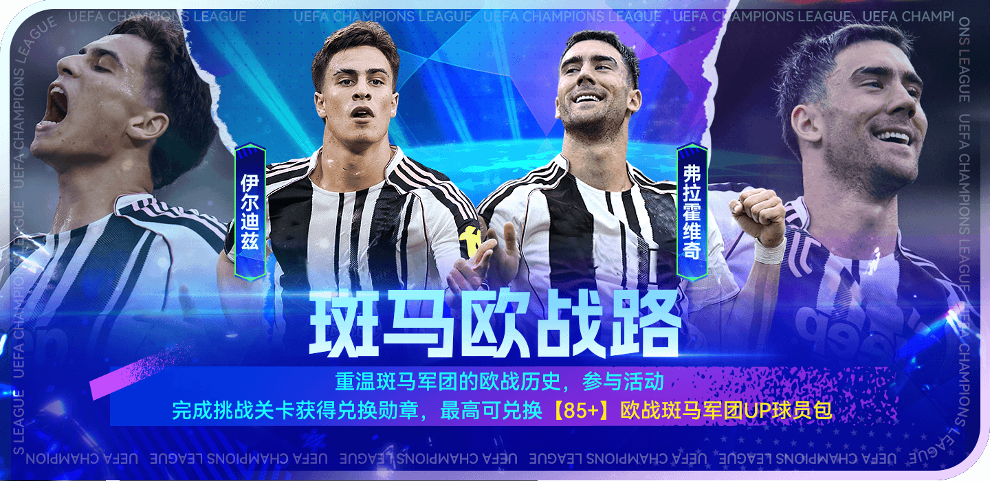 重溫斑馬軍團(tuán)的歐戰(zhàn)歷史,參與活動(dòng),完成挑戰(zhàn)關(guān)卡獲得兌換勛章,最高可兌換【85+】歐戰(zhàn)斑馬軍團(tuán)up球員包。