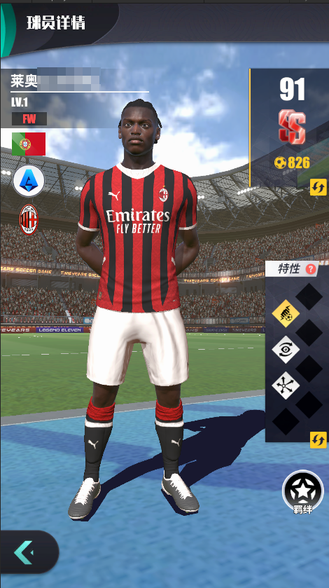 其次是“勤笑公”-萊奧,在游戲中評(píng)分高達(dá)91,是目前AC米蘭陣中評(píng)分較高的前鋒球員。其球員特性包括:高級(jí)抗壓控球,伺機(jī)而動(dòng),鬼魅切位等特性。高級(jí)抗壓控球是球員降低重心構(gòu)筑三角護(hù)球區(qū),通過(guò)身體卡位與觸球頻率控制形成絕對(duì)保護(hù)區(qū)??厍虺晒β侍岣?%。伺機(jī)而動(dòng)是指通過(guò)保守傳控消耗對(duì)手耐心,提升誘敵深入后的反向直塞球質(zhì)量。比分非領(lǐng)先時(shí),傳球與控球?qū)傩蕴岣?%。萊奧在AC米蘭陣中是十分關(guān)鍵的角色,無(wú)論是出色的突破能力,還是精彩的過(guò)人,都給AC米蘭帶來(lái)了巨大的幫助。如果玩家沒(méi)法抽到91的萊奧,游戲中也有88分的萊奧可以使用。